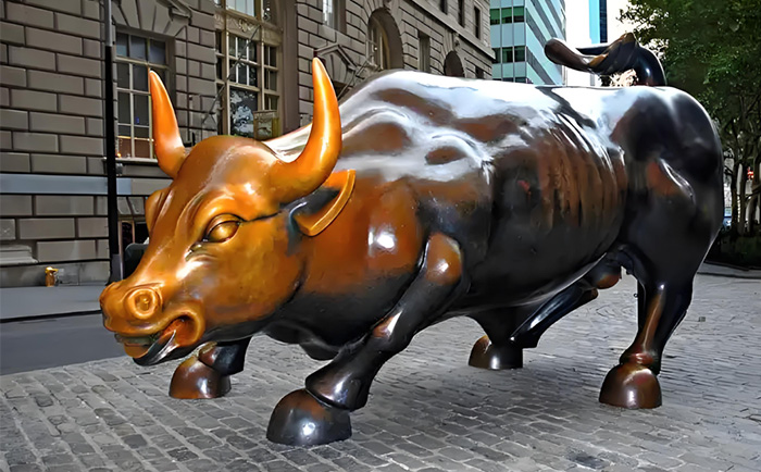 紐約曼哈頓的華爾街銅牛,無疑是全球最具影響力的銅牛雕塑之一。這尊由意大利裔藝術家阿爾圖羅?迪?莫迪卡創作于 1989 年的作品,重達 3.2 噸,以肌肉虬結的軀體、昂首前沖的姿態,成為 “牛市” 的象征。其誕生背景頗具傳奇色彩:在 1987 年美股崩盤后,藝術家自掏腰包 36 萬美元鑄造銅牛,連夜安放在紐約證券交易所前的圣誕樹下,寓意 “經濟復蘇”。盡管初期因 “非法放置” 引發爭議,但民眾對它的熱愛最終讓其落戶于百老匯大街,成為紐約的城市名片。2009 年,中國國旗首次在銅牛旁升起,見證了中美關系的深化;而 2019 年的搬遷計劃,則引發了全球對其文化價值的再思考。這尊銅牛不僅是金融市場的晴雨表,更傳遞著逆境中昂揚向上的信念。